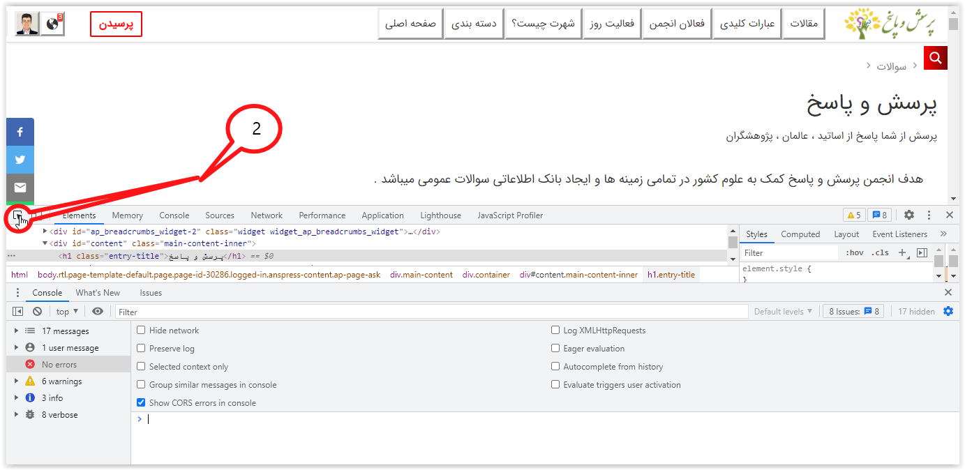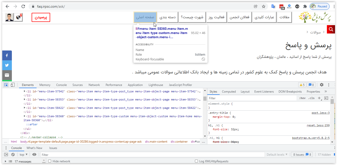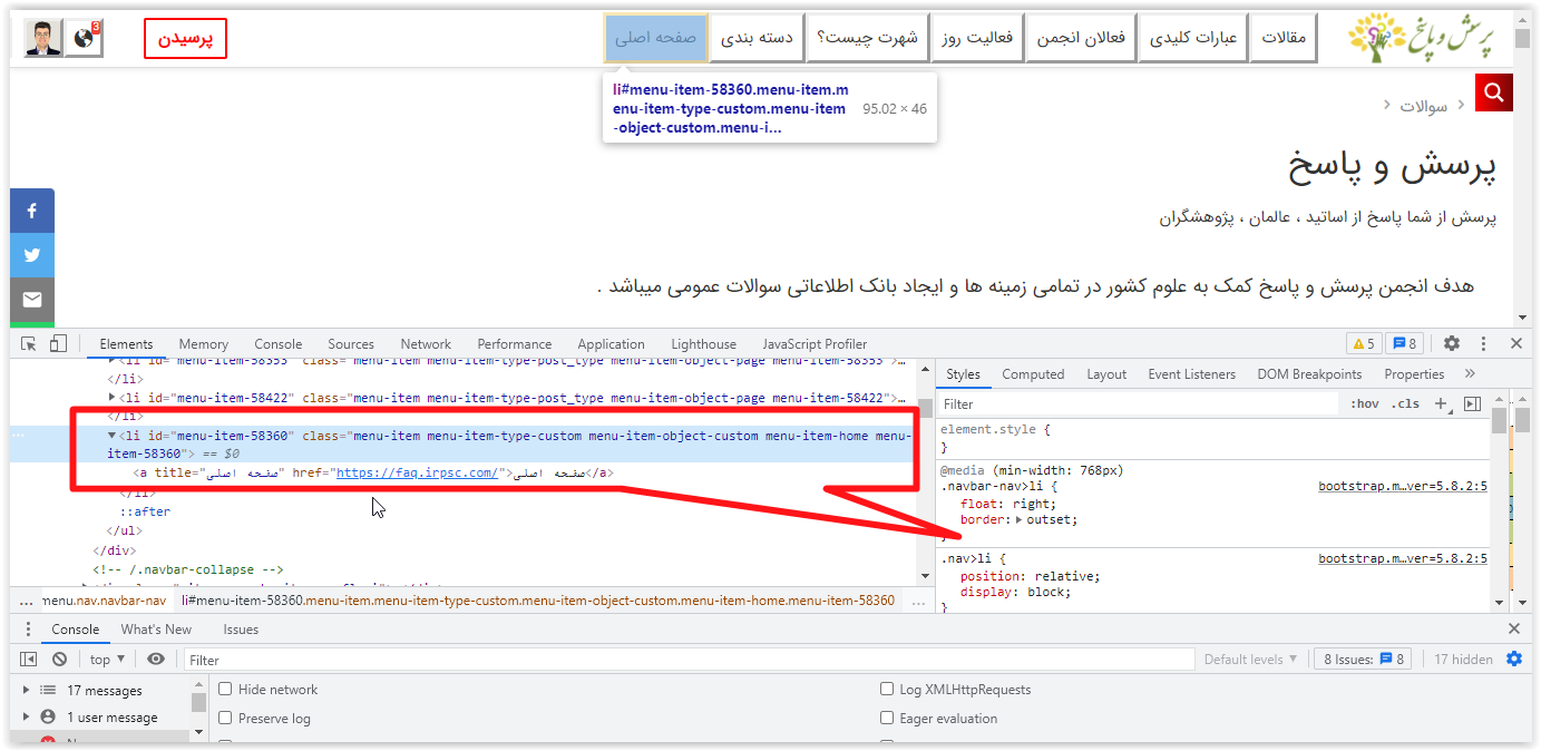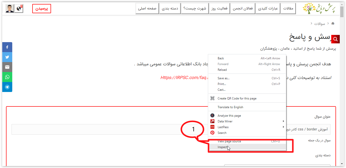 1- کلیک راست روی صفحه ای که میخواهید تغییر انجام شود روی گزینه inspect کلیک کنید
