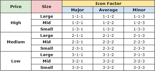 به هر شهر برای هر یک از این عوامل امتیاز 1-3 داده می شود تا سطح کلی مشخص شود. به عنوان مثال، منهتن شهری مشهور در جهان است که به دلیل قیمت بالای ملک شناخته شده است، اما در واقع از نظر اندازه در انتهای کوچکتر قرار دارد. به این ترتیب، منهتن به عنوان یک شهر 1-3-1 طبقه بندی می شود. در حالی که فاکتور نماد و قیمت ملک آن مطمئناً در میان شهرهای برتر جهان قرار دارند، از نظر اندازه کلی دچار افت می شود.