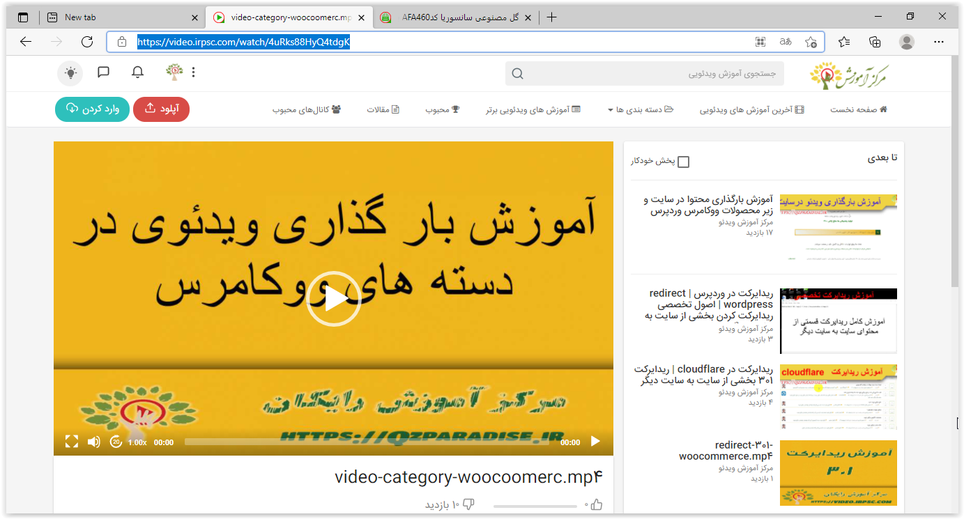 آموزش بارگذاری ویدئو در دسته بندی های ووکامرس در سایت های وردپرسی سلام دوستان گرامی بسته به نیاز یکی از مدیران ویدئویی برای آموزش بارگذاری ویدئو در دسته بندی های فروشگاه ووکامرس و نیز قالب های وردپرسی که با جزئیات کلاسیک نیاز به بارگذاری ویدئو دارند برای شما آماده کرده ام . در صورتی که سوالی در خصوص روش بارگذاری ویدئو داشتید میتوانید در همین بستر مطرح نمایید . برای دیدن ویدئو میتوانید روی محتوای زیر کلیک کنید تا در همین صفحه به نمایش گذاشته شود : عکس های بارگذاری شده به از صفحات محتوای آموزشی : عکسی از ویدئوی بارگذاری شده در صفحه محصولات فروشگاه ملی را میتوانید مشاهده نمایید : لینک نمونه کار را میتوانید در زیر بر روی آنن کلیک کنید : لینک ویدئو در صفحه محصول  عکس از مرکز آموزش ویدئویی و بستری که میتوانید در آن به سادگی ویدئو های خود را بارگذاری نمایید و فراموش نکنید بارگذاری رایگان میباشد :